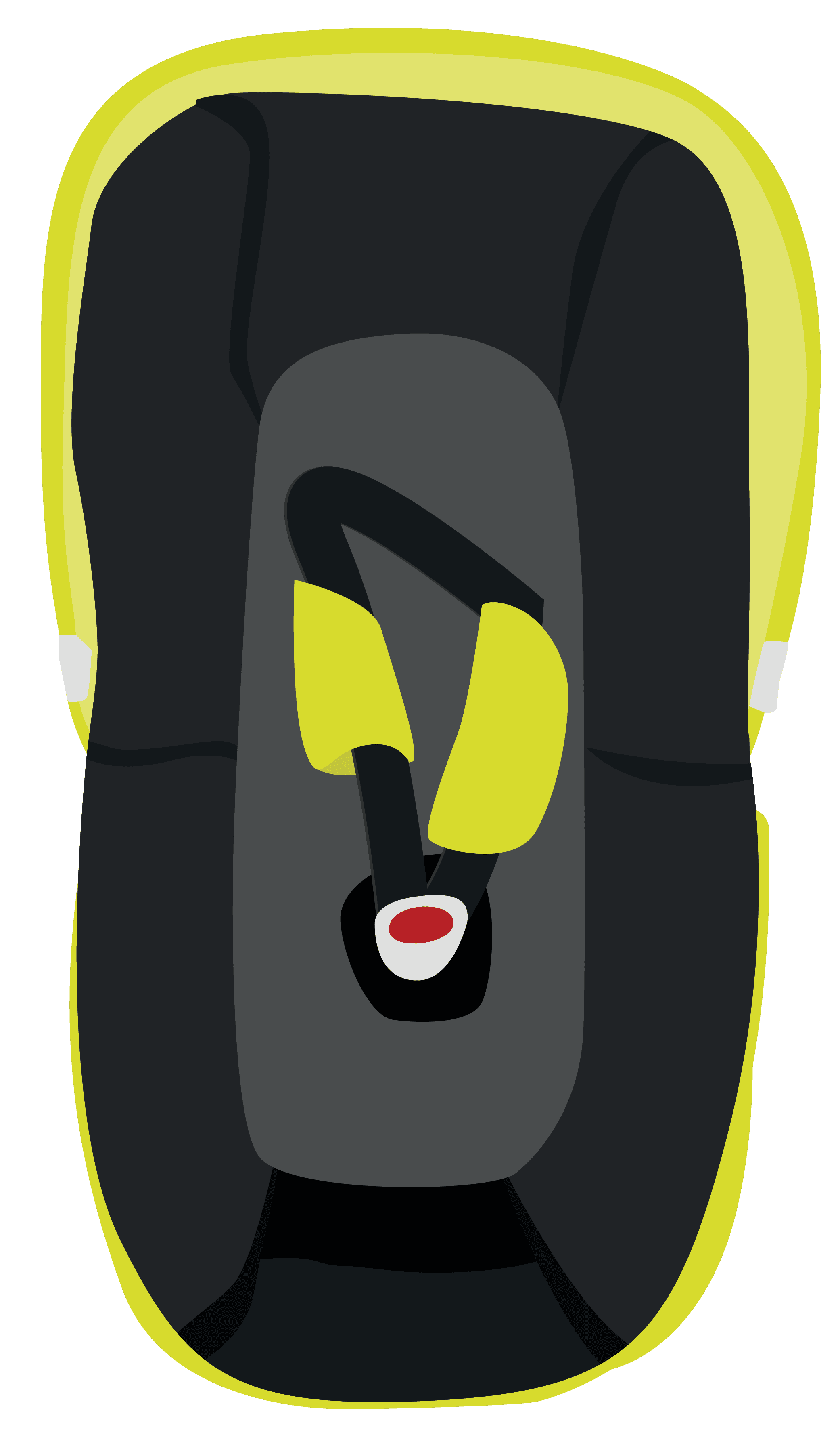 - de baby wordt er liggend in vervoerd, vastgeklikt met gordelharnasje in de wieg