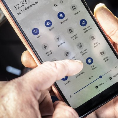 Liefst leg je je toestel ergens waar het je niet kan afleiden, zo vermijd je de verleiding. In het handschoenkastje, in je koffer, of gewoon in je tas.