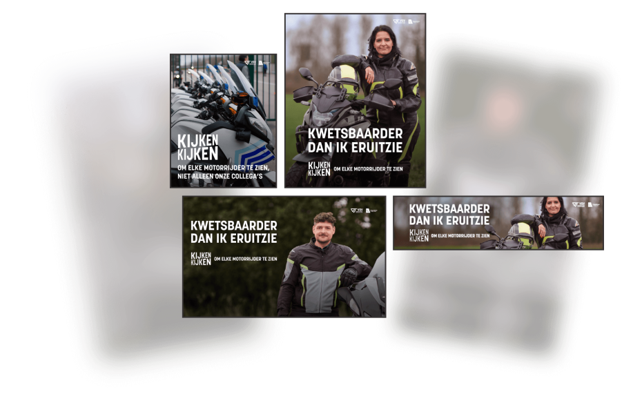 Motorrijders zijn kwetsbaarder dan ze eruitzien. Hen beter beschermen op de weg, begint met beter te kijken. Want motorrijders mogen er dan stoer uitzien met hun helm en lederen outfit, ze zijn kwetsbaarder dan ze eruitzien. En onder elke helm zitten mensen met vrienden en familie die van hen houden.