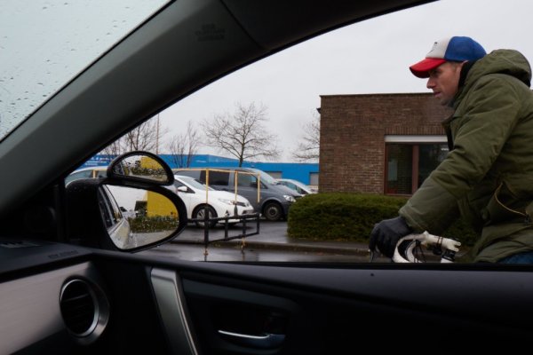 - Draai de linkerbuitenspiegel zoveel mogelijk naar links, tot je nog net de linkerkant van de wagen in de rechterkant van de spiegel kunt zien.