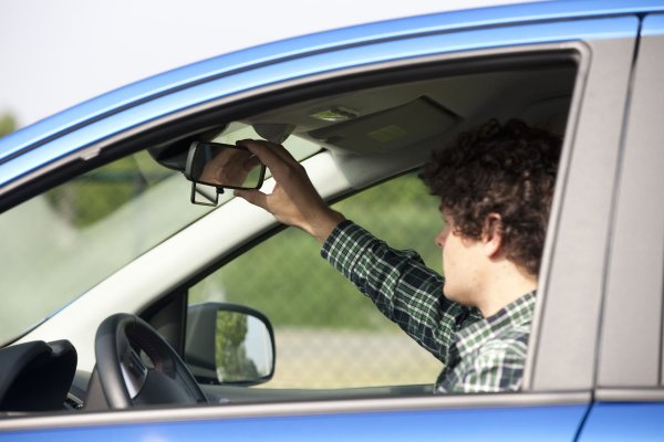 - Je binnenspiegel moet je goed centraal positioneren voor je vertrekt, zodat je zoveel mogelijk door je achterruit ziet.