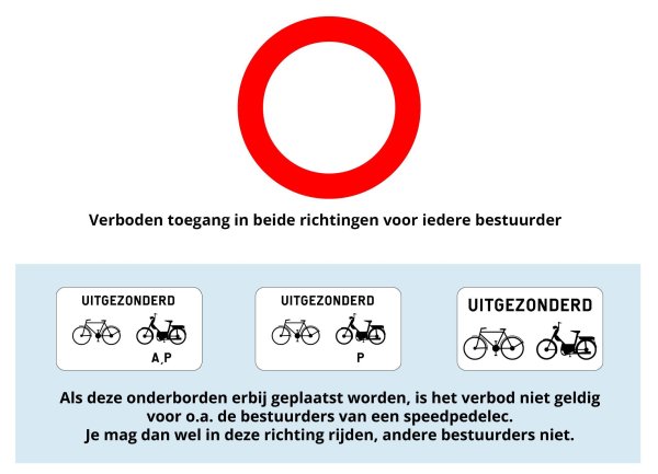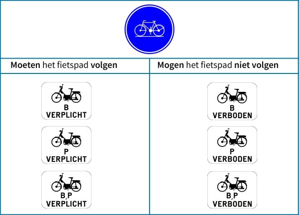 • De twee bovenstaande borden zijn van toepassing voor fietsers en bestuurders van speedpedelecs.